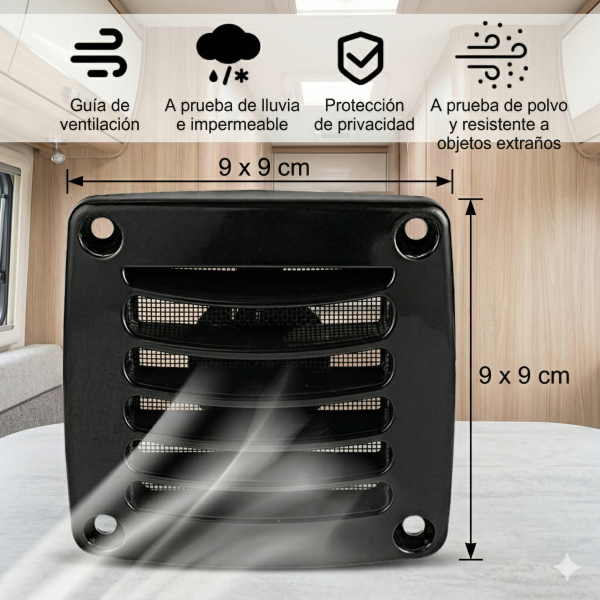 Rejilla de Ventilación anti polvo insectos ABS 9x9cm para Casa Rodante y Camper – Flujo de Aire Eficiente